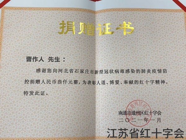 再过几天就是曹老100岁生日,区红十字会颁发的捐赠证书也成为了给这位百岁老人最好的生日礼物。“希望大家都能够奉献爱心,我相信我们一定可以战胜疫情。”曹老说。
