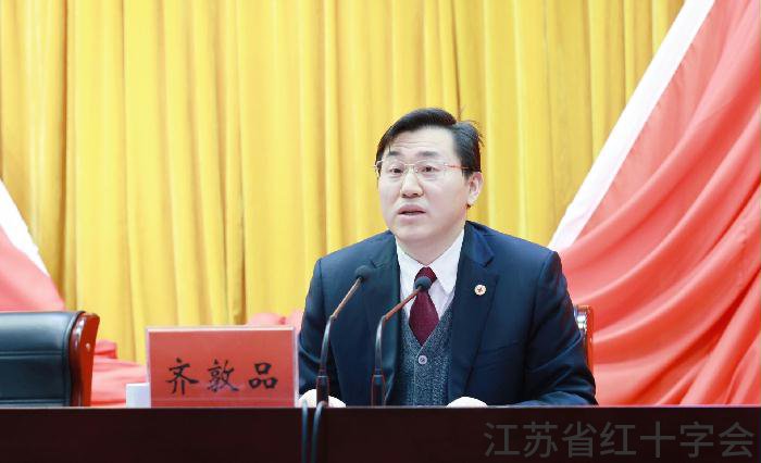 齐敦品在讲话中充分肯定了淮安市红十字会近年来所取得的成绩,认为淮安市红十字会坚持以习近平新时代中国特色社会主义思想为指引,紧紧围绕中心、服务大局,广泛动员社会力量,认真履行法定职责,扎实推进改革创新,各项工作取得可喜成绩,用实际行动彰显了淮安人民的博爱情怀,展现了中华民族扶危济困、乐施好善的传统美德。他从强化政治引领,始终把牢正确政治方向;聚焦主责主业,加快构建人道服务体系;深化改革创新,大力推进治理体系和治理能力现代化等三个方面,对我市红十字事业发展提出了殷切期望。