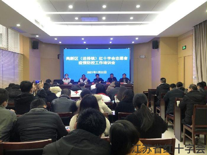 1月22日上午,高邮市高新区红十字会在镇执法中心指挥部对全镇40多名红十字志愿者举办新冠肺炎疫情防控工作培训会。