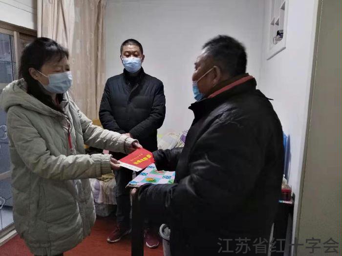为弘扬“人道、博爱、奉献”的红十字精神,1月22日上午,市红十字会党组成员潘扬、江都区红十字会副会长陈杰一行走访慰问江都区困难家庭王某和殷某家,嘘寒问暖,倾听他们的心声,了解他们的生活情况和实际困难,并送去米、油等生活必需品,鼓励他们乐观面对逆境,早日恢复到正常生活。