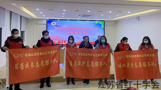 1月22日下午,常福街道景泰社区成立红十字会,并通过选举产生景泰社区红十字会第一届理事会,常熟市红十字会常务副会长董萍向景泰社区红十字会授牌。仪式上成立红十字志愿服务队总队,下设三支分队,分别开展各项博爱家园项目;同时成立景泰社区红十字基金会,首批5家爱心单位捐款1.9万元,将用于景泰社区博爱家园人道项目实施。