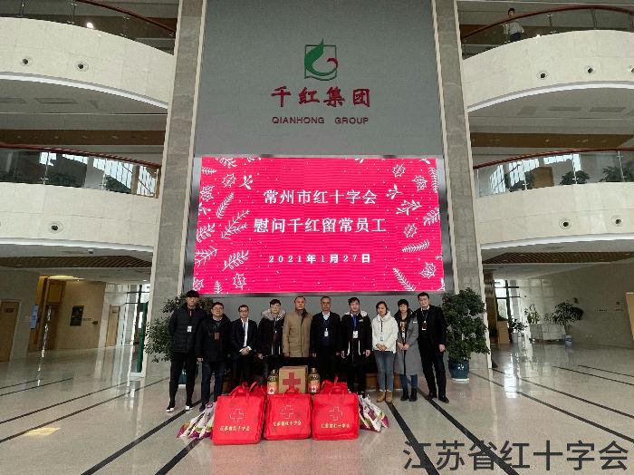 为响应政府“非必要不返乡”、“就地过年”号召,1月27日下午,常州市红十字会副会长朱成凤一行到常州千红生化制药股份有限公司为留常外地员工代表送上慰问金、慰问品和“抗疫大礼包”,呼吁全社会关心、关爱外地员工,让他们每一个人都能在常州感受到“在家过年的温暖”。这也是常州市红十字会根据疫情防控需要,及时调整“博爱送万家”活动内容,号召辖市区红十字会对留常务工人员进行慰问的首站。