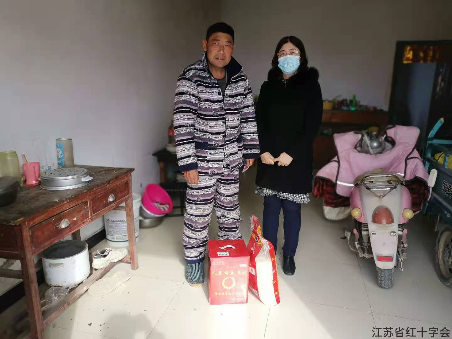 红十字会为他们送去了500元慰问金及米、油等慰问品。副会长袁宏还亲切的与他们进行交流,了解他们的情况,表示有问题要及时沟通,并送上新春的祝福。