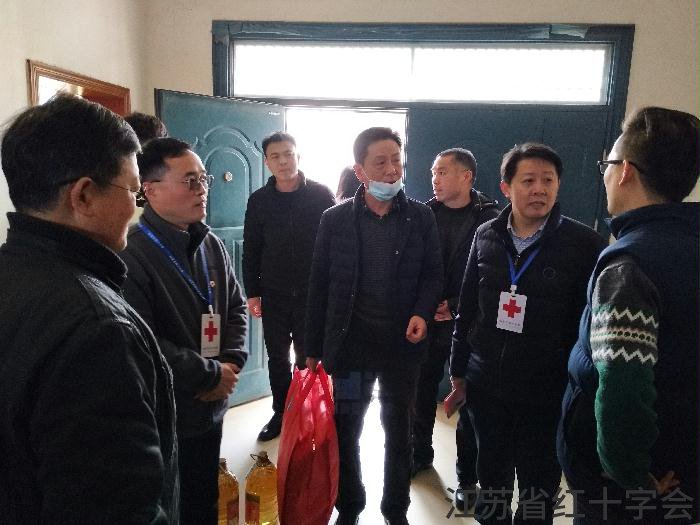2月4日上午,栖霞区委常委、统战部长郭昌标带领区、街道红十字会领导马奎、李斌等来到龙潭街道孙庄村,走访慰问辖区内艾宏新(化名)一家。艾宏新在2018年患鼻癌中晚期,放化疗后需要长期吃药控制,无劳动能力。其儿子从2013年患尿毒症一直透析,并于2017年底进行换肾手术,后期需要常年服用抗排异药物,也无劳动能力。妻子2020年做腰椎手术,情况稳定,但身体弱,无法做重活。2020年征地代劳后退休,家中仅靠妻子微薄的退休工资维持,家庭生活非常困难。
