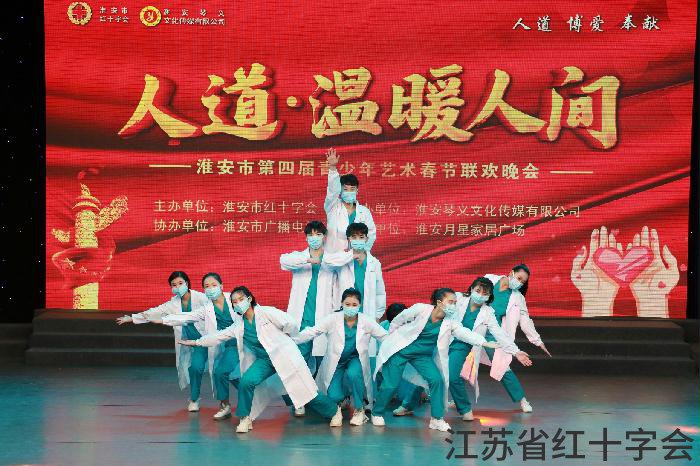 这一群身穿白大挂的“医生”,是由淮安市淮安区红十字会和淮安楚州中学为淮安市红十字主办“人道·温暖人间——淮安市第四届青少年艺术春节联欢晚会”选送节目《最美逆行者》中参演的小演员们。