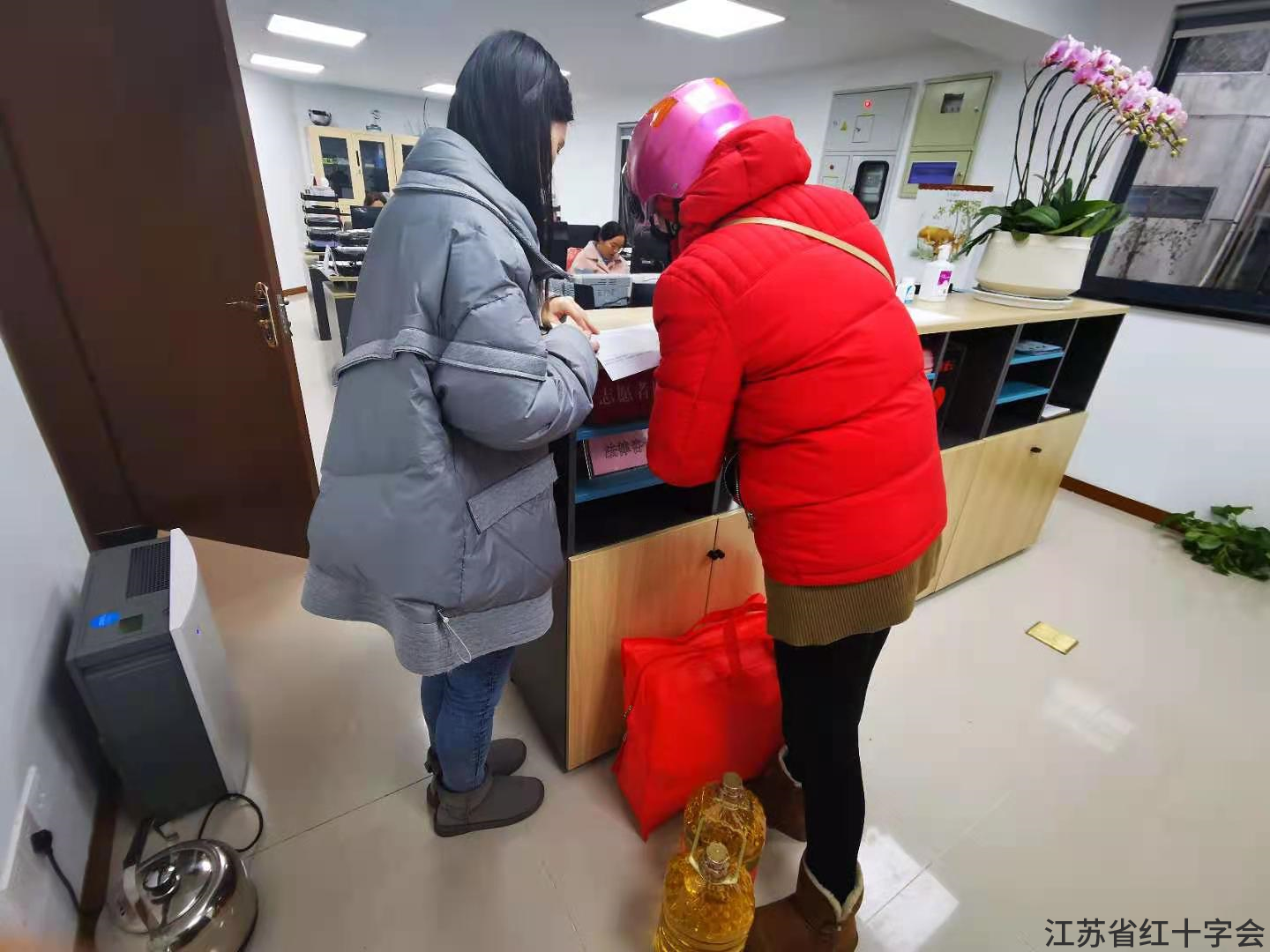 春节来临之际,苏州市姑苏区金阊街道毛家桥社区红十字服务站对辖区内新增失独家庭和困难群众进行2021年红十字"博爱送万家"送温暖活动,送去了救助金和慰问物资。