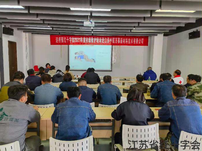 2月22日下午,高邮市送桥镇红十字会将初级救护知识培训送到江苏中航百慕新材料技术有限公司,此次培训内容为心肺复苏、气道异物梗阻的急救、自动体外除颤仪(AED)的使用、止血包扎等应急救护知识,50多名员工参加了此次培训,主讲师资由高邮市红十字会培训师孙宁老师担任。