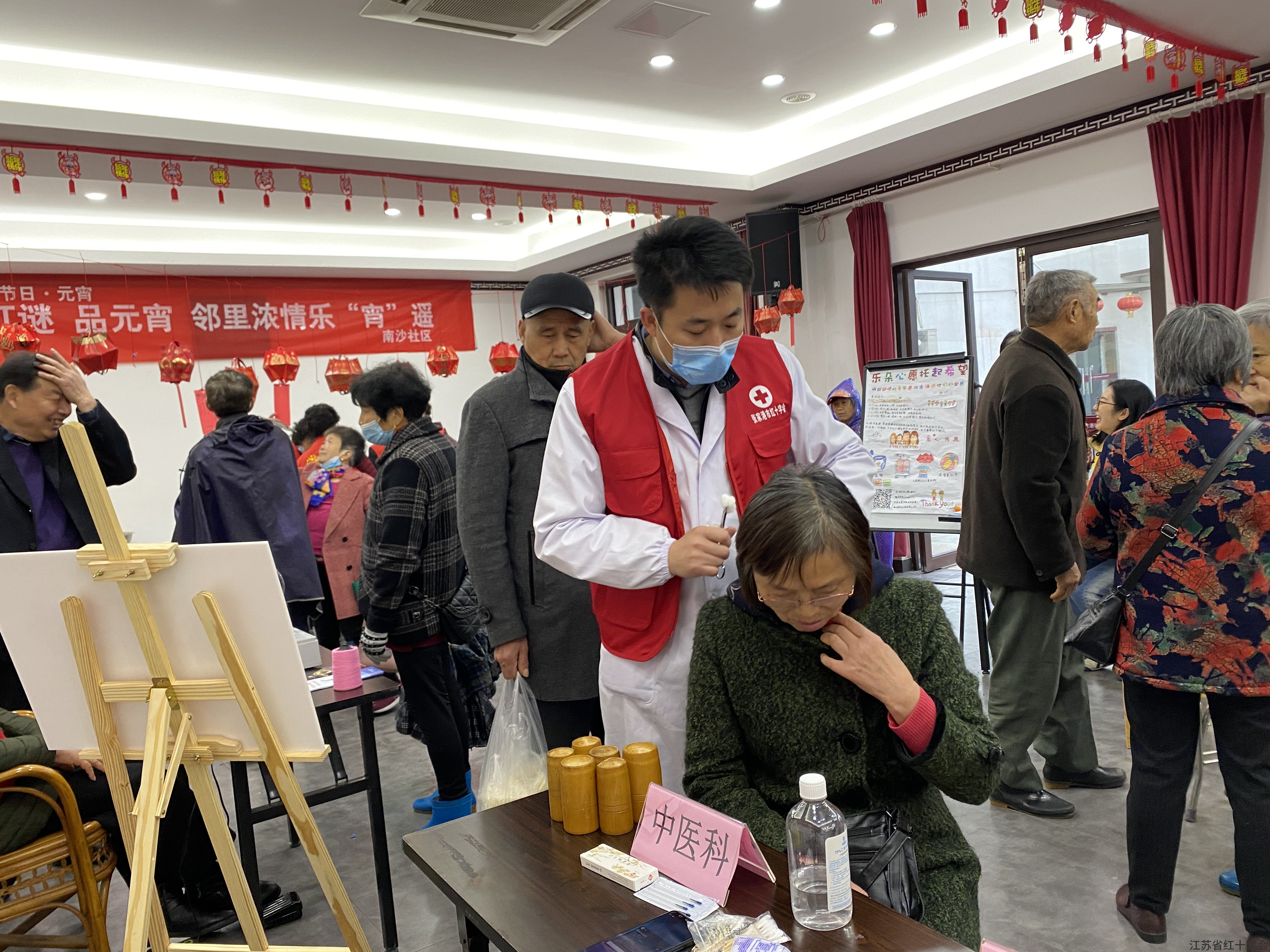 活动中,红十字志愿者发挥专业特长,为社区群众免费测量血压,普及健康知识,推广中医技术,共同欢度元宵佳节。