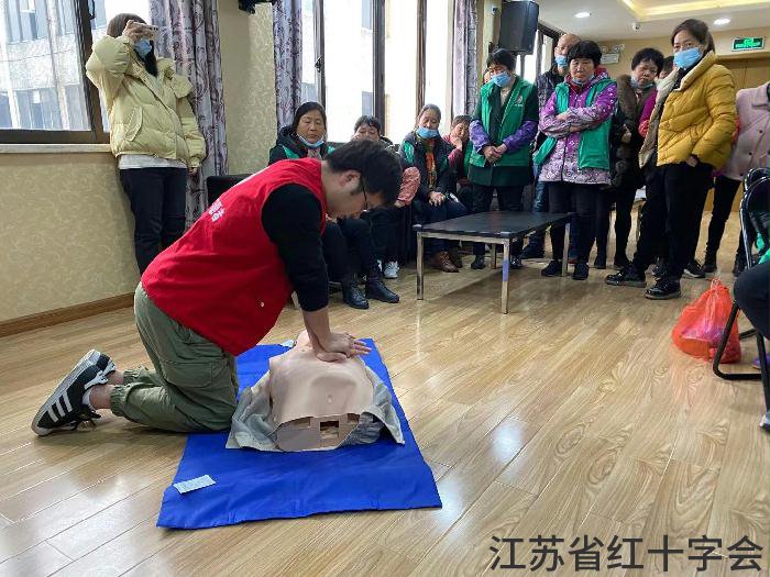 3月1日上午,苏州市吴江区盛泽镇红十字会的志愿者戴熙晨为36名盛泽居家养老服务中心员工进行应急救护培训。