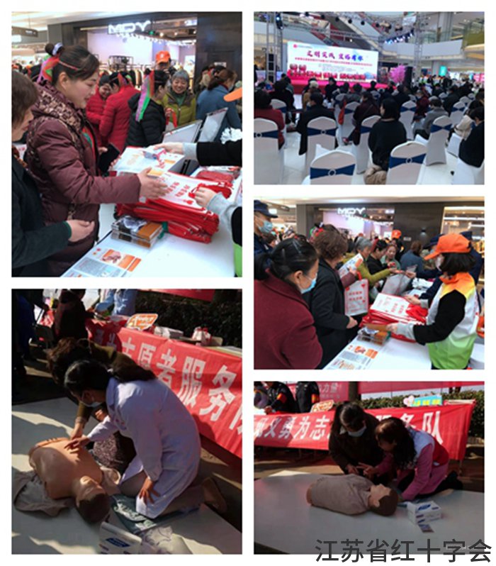 活动现场,各相关单位和志愿服务团队同时开展集中服务活动。会场一角的红十字志愿者们摆放出展板,向前来参与活动的群众发放各类宣传材料,宣传红十字精神和“三献”(即无偿献血、造血干细胞捐献和遗体器官捐献)相关政策。另一群志愿者们在江心分会场向群众普及异物入眼、扭伤、烧伤、中暑等突发事件的正确处置办法;讲解了心肺复苏、呼吸道梗阻等急救知识,并利用模拟人进行了演示,鼓励群众多学急救技巧,助人又助己,前来观看、学习和参与的群众络绎不绝,热情高涨。