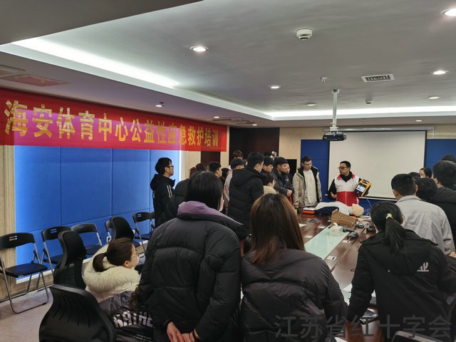 为全面提升海安体育中心场馆各工作人员的急救能力,更好地保障来馆锻炼市民的生命健康。3月5日上午,海安市红十字会应急救护志愿服务队走进市体育中心,对中心员工及部分市民朋友进行应急救护知识培训。
