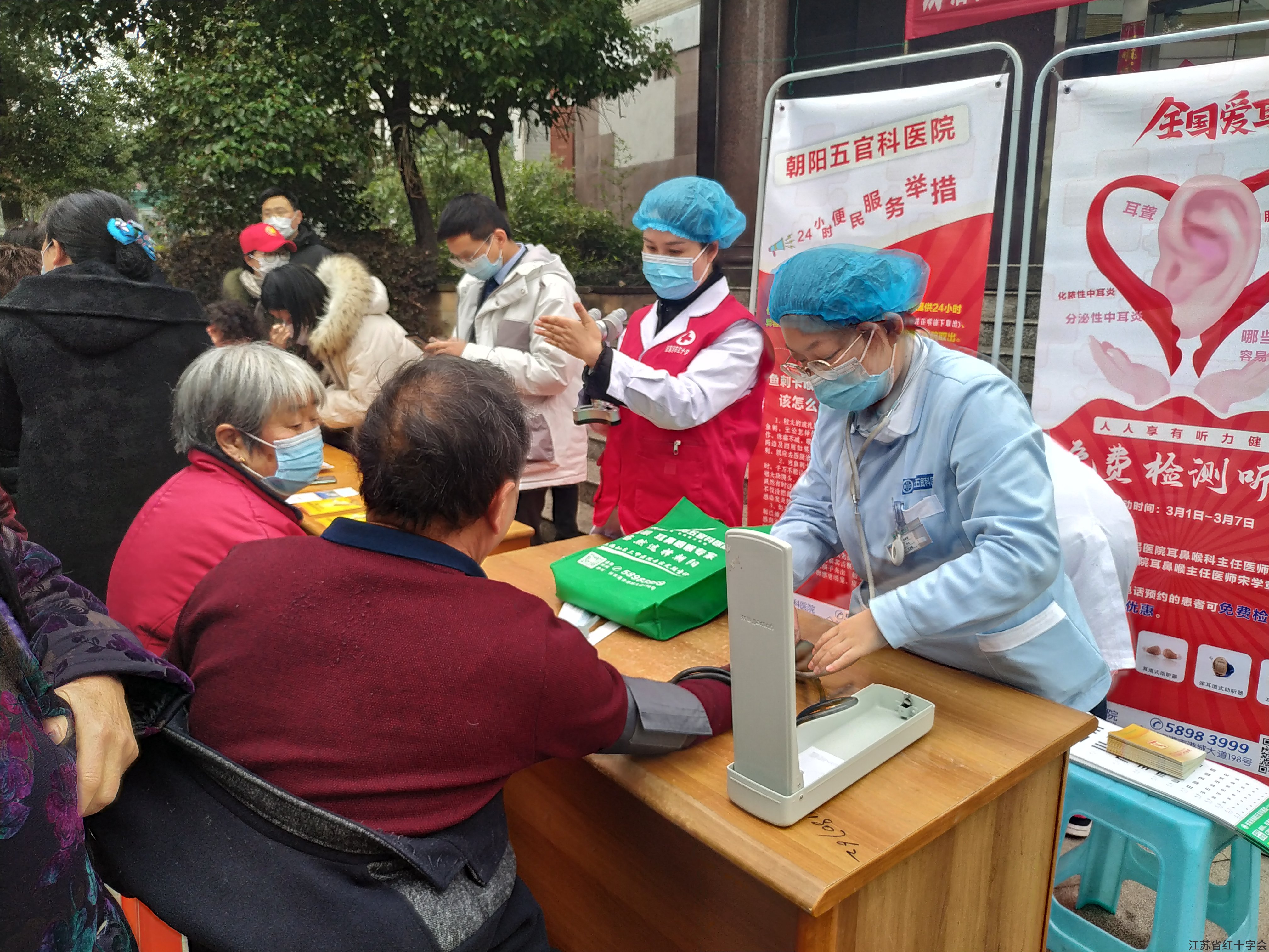 3月5日上午,张家港市经开区(杨舍镇)城西街道红十字会联合朝阳五官科医院在金城花园广场举办了免费义诊志愿活动。