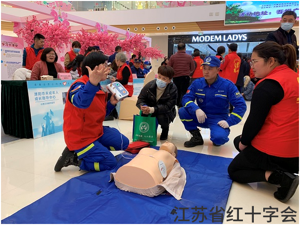 市红十字会立足本职工作,发挥职能特长,组织市红十字应急救护志愿服务队和市红十字无偿献血志愿服务队两支志愿队伍提供无偿献血宣传、造血干细胞捐献、应急救护知识宣传等服务。志愿服务队在现场向群众演示心肺复苏、异物气道梗阻和AED的操作要领,并手把手将每个操作细节教授至群众,及时纠正操作过程中的错误动作。