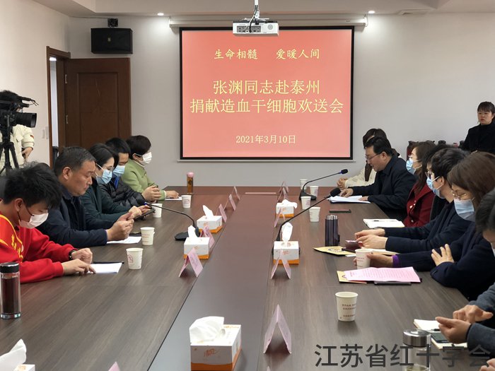 3月10日上午,丹阳市红十字会在滨河社区会议室为我市第6例造血干细胞捐献者张渊同志举行欢送仪式。镇江市红会党组书记、常务副会长苏枫,丹阳市政府副市长、红十字会会长贺云华,红十字会常务副会长朱万东,团市委书记朱梦盼等相关领导及志愿者父亲参加了欢送会。欢送仪式由市红会副会长臧玉金主持。