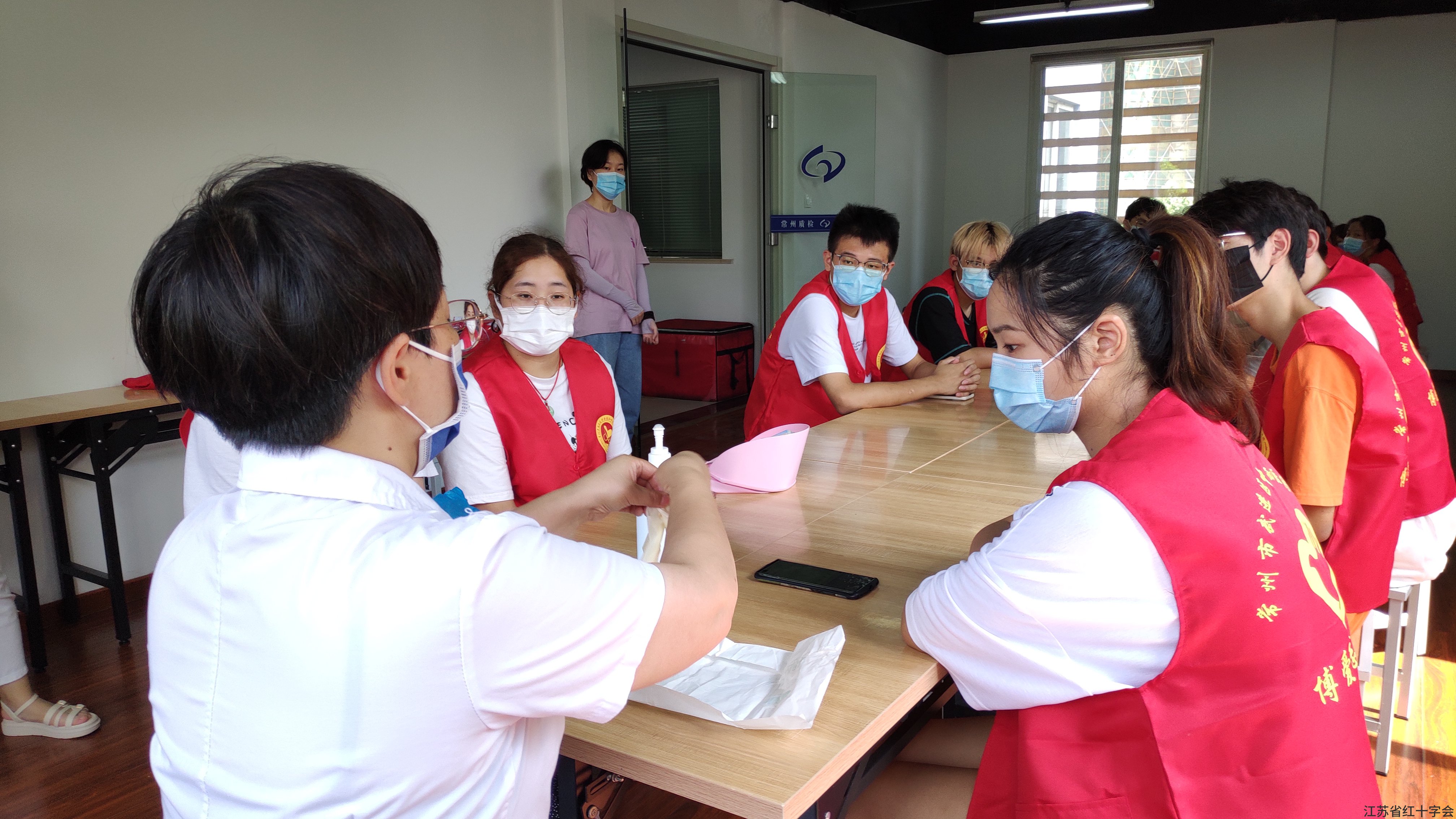 8月4日下午,17名志愿者到横林地板城疫苗接种点集合,穿上红马甲,听取横林医院医生为大家讲解关于口罩、一次性帽子、速干洗手剂的正确使用方法,其中重点介绍了医用手套的使用条件和途径。接下来金院长对各位志愿者的此次活动发表了讲话。他对目前横林镇横林医院核酸检测点、横林地板城疫苗接种点的每日任务做了简单说明。讲话完后,在医院负责人安排下,大家就到各自岗位认真工作起来。夏日炎炎,接种点协助防疫不是一件简单轻松的事情,但是大家依旧热情高涨,帮助引导接种点人群遵循防疫要求排队,有序等候。整个下午,志愿者们将横林地板城疫苗接种点的工作秩序维持得井井有条。
