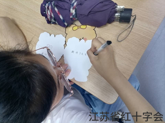 商品购买环节结束以后,志愿者们在明信片上写下给小朋友们真心的祝福,满含希望的成长寄语,希望小朋友们能够永远开心,茁壮成长!