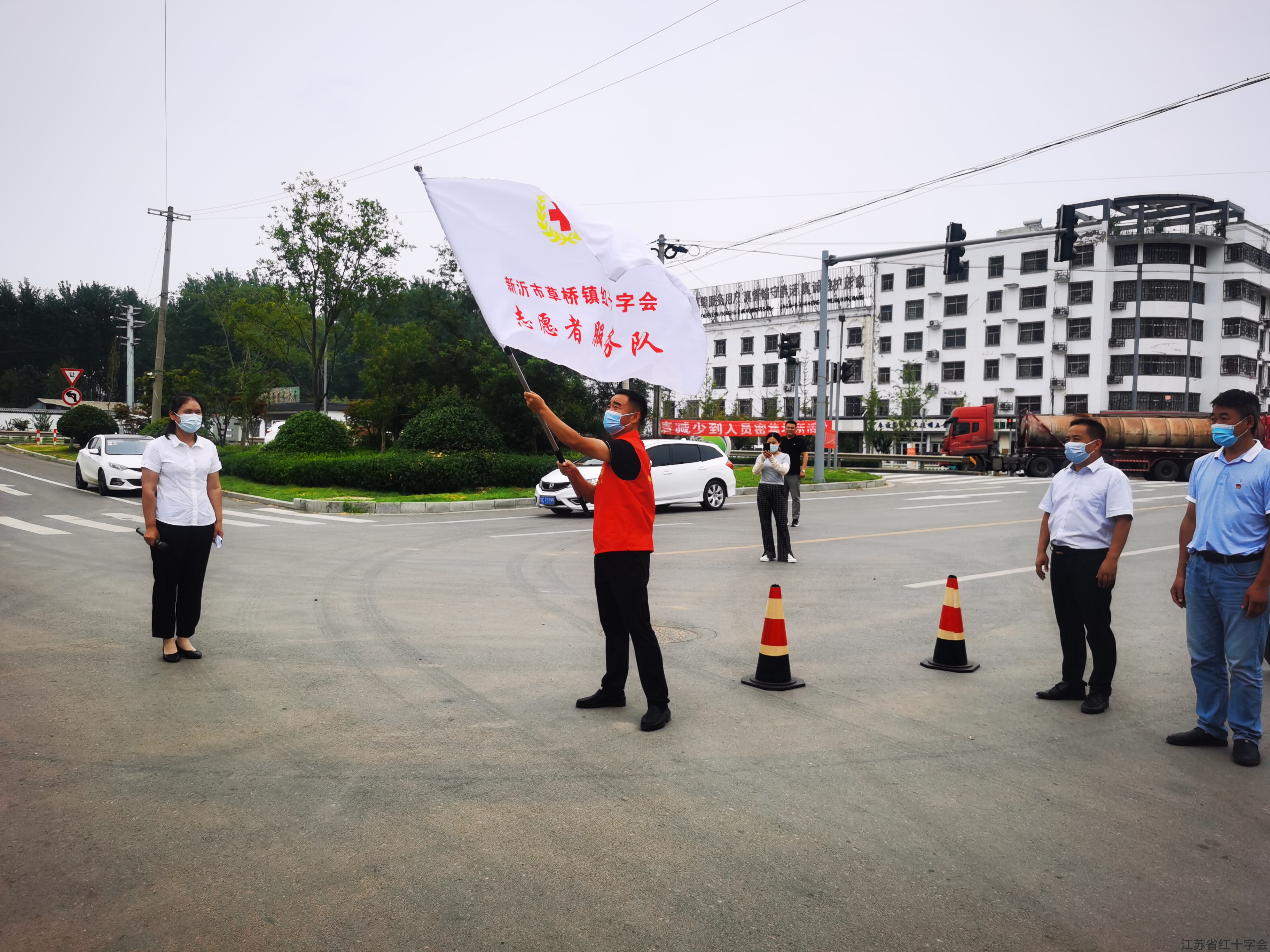 8月10日,新沂市红十字会为草桥镇红十字会志愿者服务队授旗。此次活动在草桥镇草桥村疫情检查卡口举行。