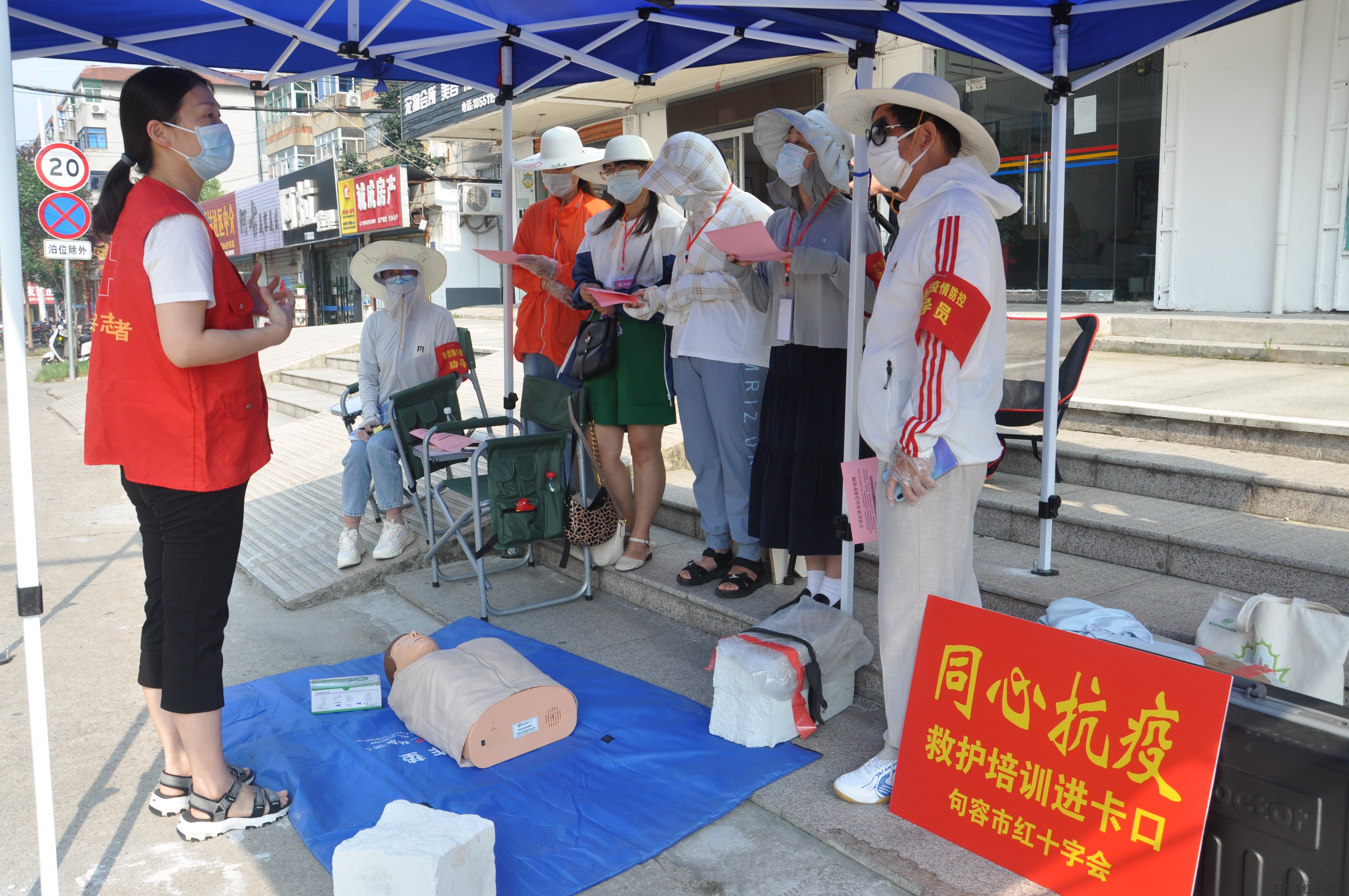 疫情防控工作开展以来,江苏句容万余名志愿者主动投身战线抗疫情,筑牢阻击疫情“防控墙”。为助力抗疫,进一步弘扬红十字精神,提高志愿者们在高温天气下的自我防护能力,10日,句容市红十字会邀请急救培训老师来到防疫一线,为志愿者们进行急救知识培训。