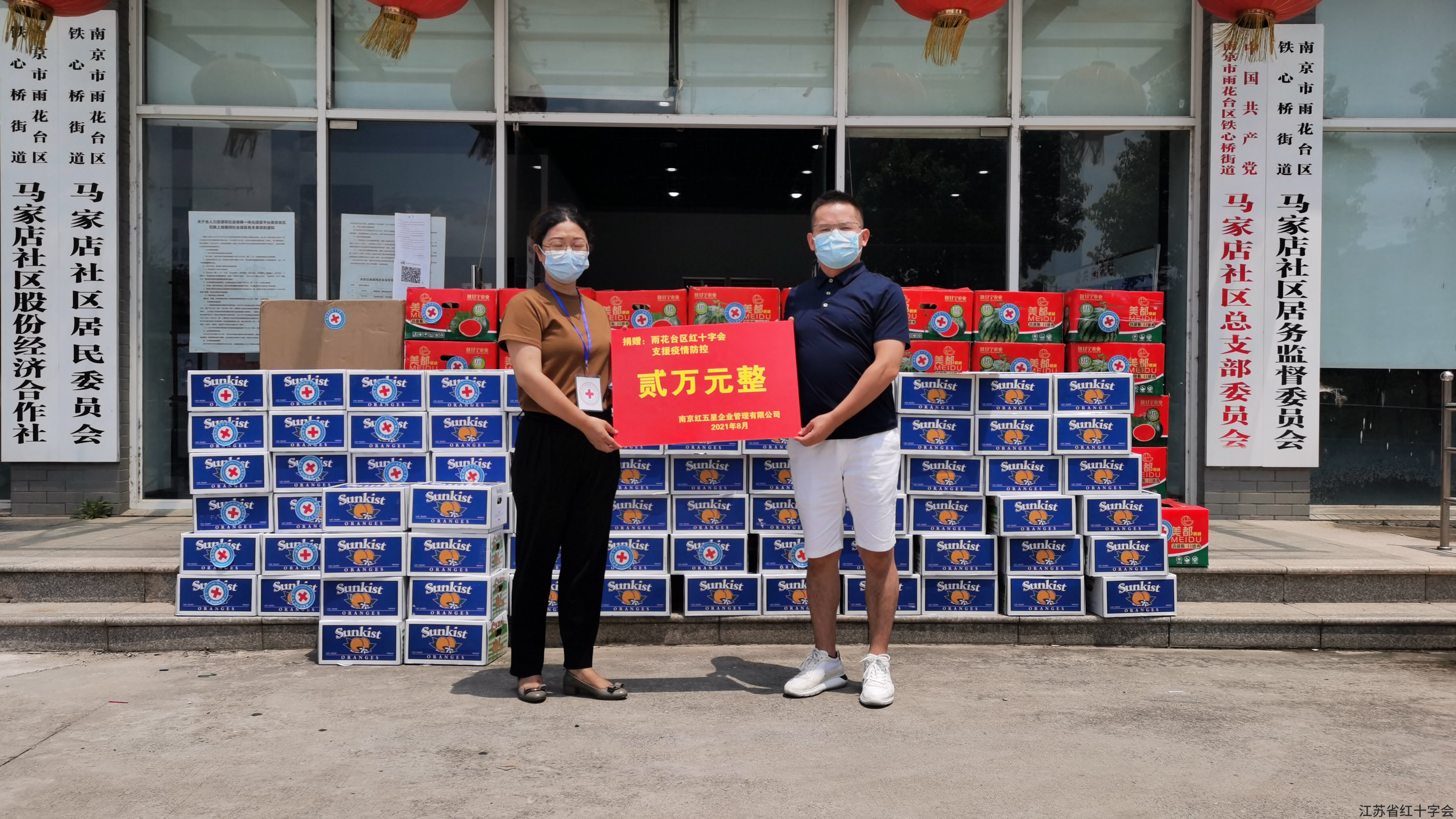 新冠疫情还在肆虐,全民抗疫还在紧张进行,在“立秋”之日,社区的抗疫战歌奋进有力,整个南京丝毫没有凉快之意,而南京人“啃秋”的风俗绝不会因为疫情而断档。“你在一线抗疫辛苦,我送西瓜咱们一起啃秋”,民进会员南京红五星企业管理有限公司总经理戚夫凯在立秋之日通过雨花台区红十字会为铁心桥街道的一线抗疫人员送去了西瓜、橙子、口罩等抗疫物资,让社区的全体抗疫战士在酷暑中啃秋,能够在2021年度剩余的日子中幸福美满。我们为有责任有担当有爱心的年轻会员点赞。