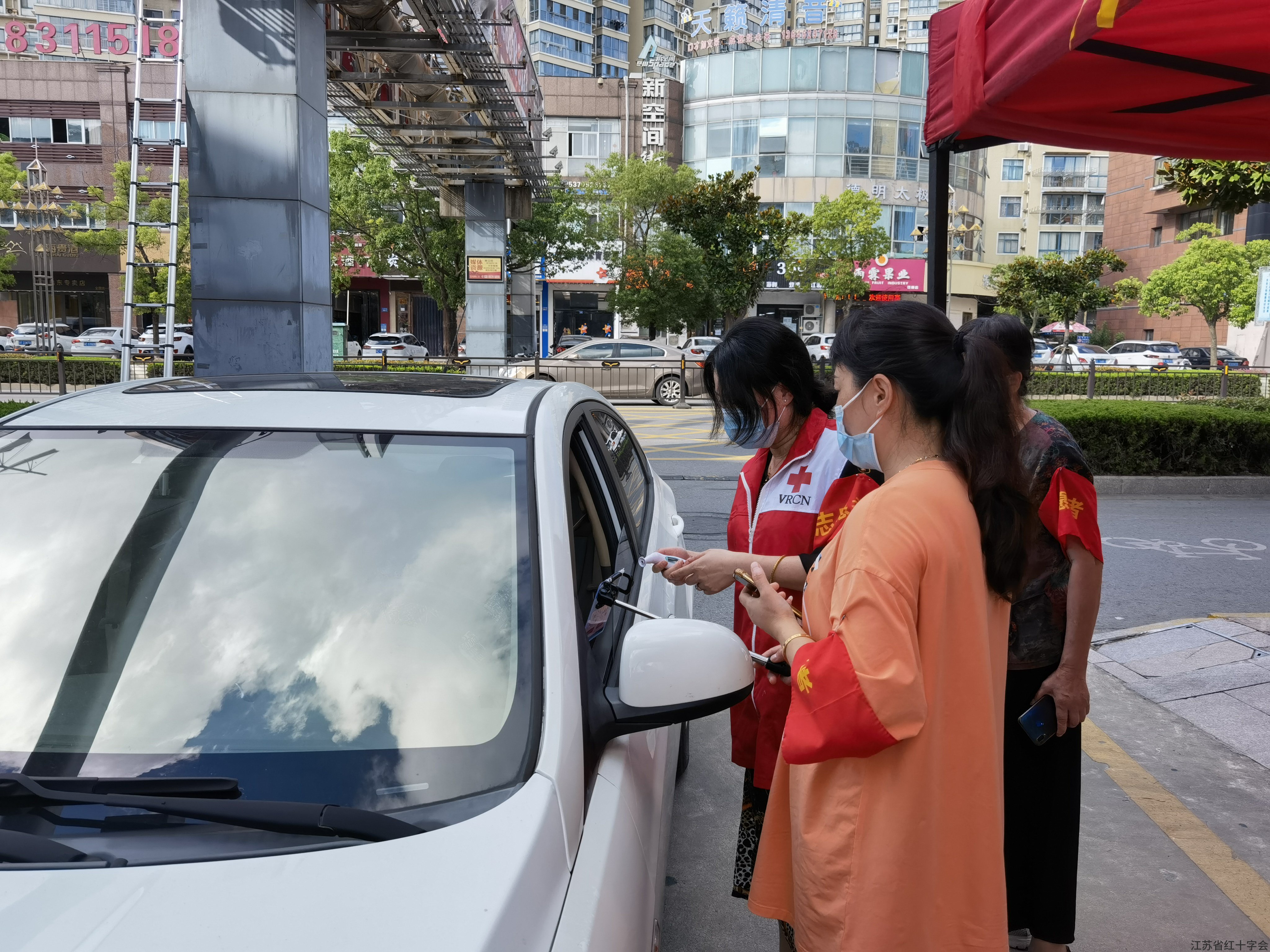 结对社区阳光花苑是紧邻人民路的老小区,人流量大、人员情况杂。每天下午四点半到晚上十点,红会党员们配合社区坚守卡口,毫不懈怠。他们身着红马甲,在小区卡口逐一检查来往人员和车辆,核对行程码与健康码,测量体温并进行登记,一丝不苟完成卡口防疫任务。“您好!请戴好口罩,请出示一下您的健康码、行程码,谢谢。”“请大家排好队,有序地扫码。”一天下来,党员干部、志愿者们声音变得沙哑,衣服不时被汗水浸透,即便如此,志愿者仍纷纷表示,“参与疫情防控工作,是我们应尽的义务,能为大家的健康安全尽一份微薄之力感到非常骄傲和自豪。”红会党员志愿者还利用双休日到所在社区报到,积极参与所在社区防控工作。