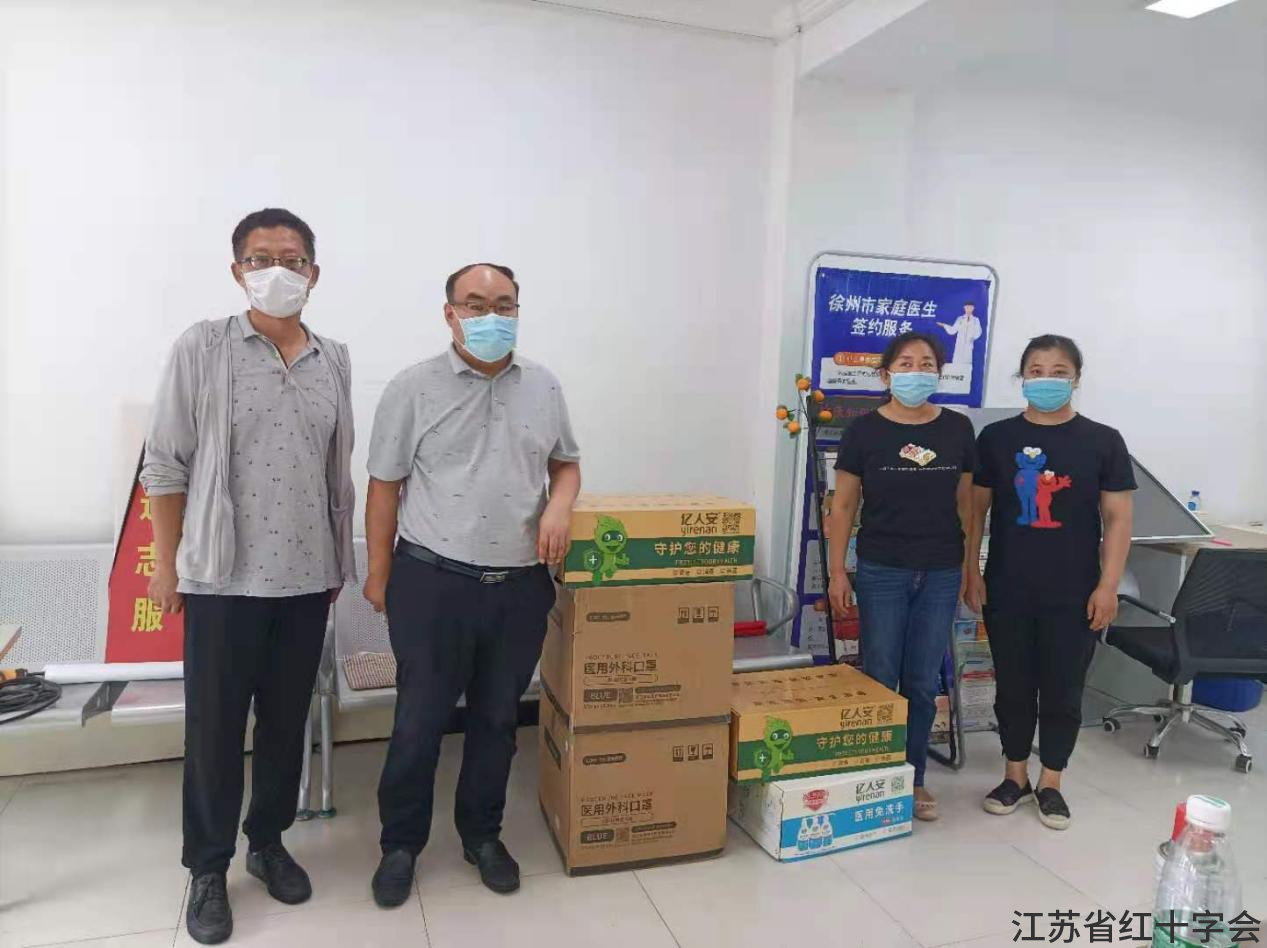 区红十字会常务副会长董建国带队先后来到骆驼山街道津东社区博爱家园、彭城街道新生社区博爱家园,为每个博爱家园送去3000只一次性医用口罩和120瓶消毒液,仔细询问了“博爱家园”的建设情况和疫情防控中的困难和需要,嘱托“博爱家园”工作人员要做好疫情防控,在疫情抗击中体现“博爱家园”的服务价值。