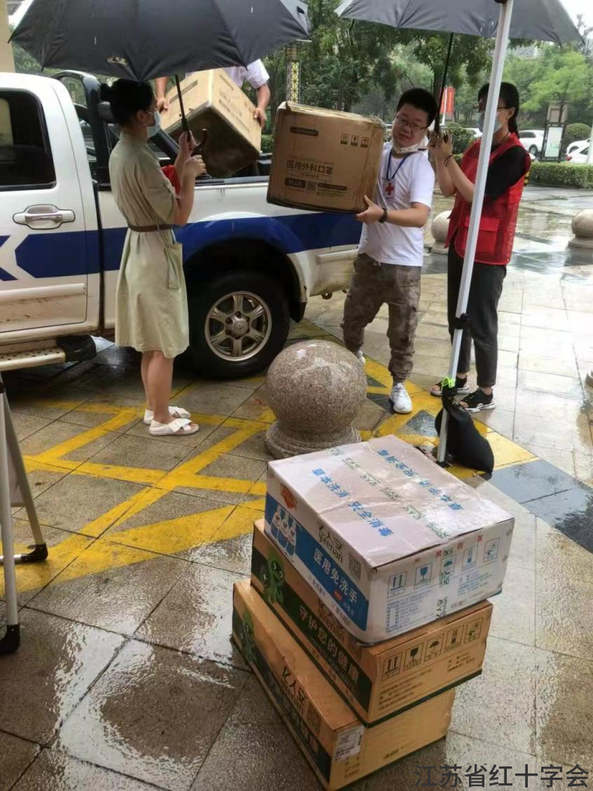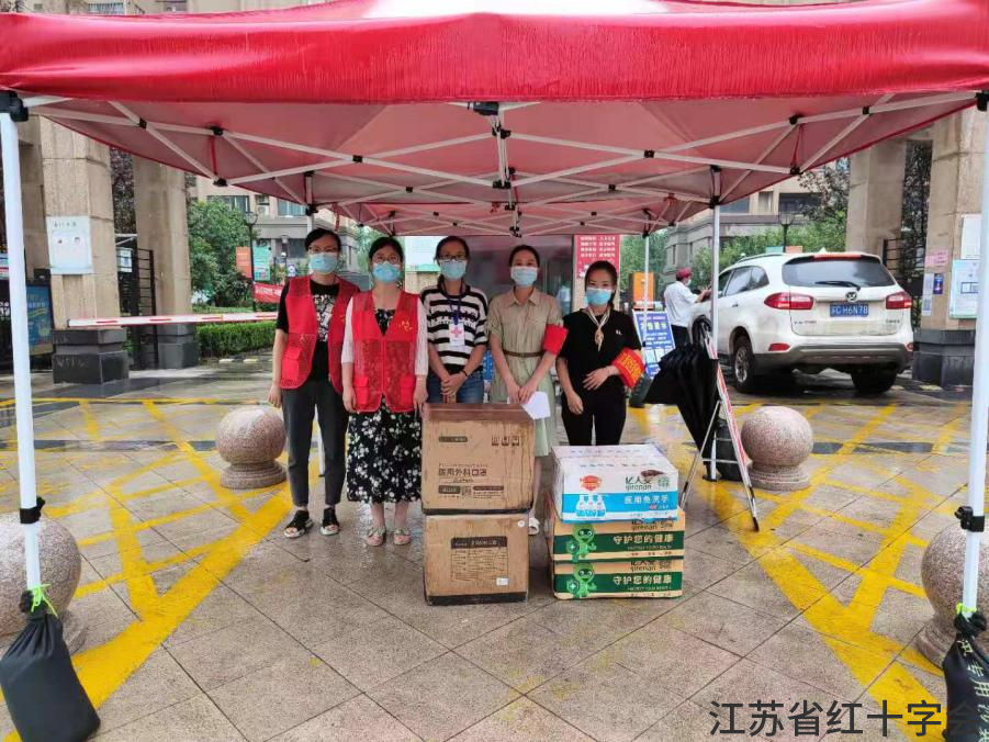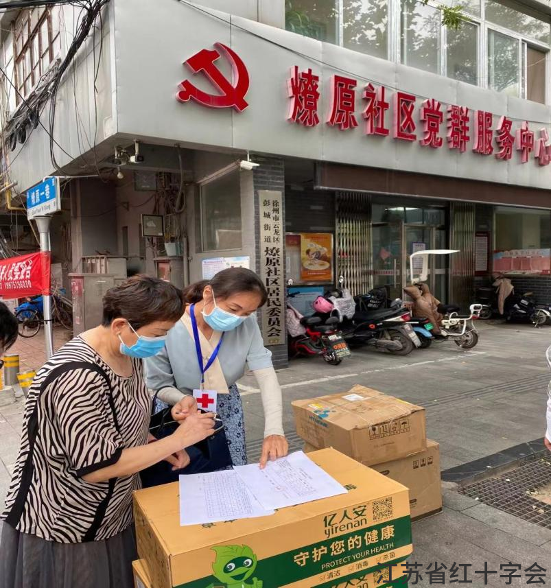 潘塘街道副主任董辉领到防疫物资后,对区红十字会工作人员感激地说,有了区红十字会发放的这批防疫物资,我们社区常态化疫情防控有了必胜的信心和毅力!