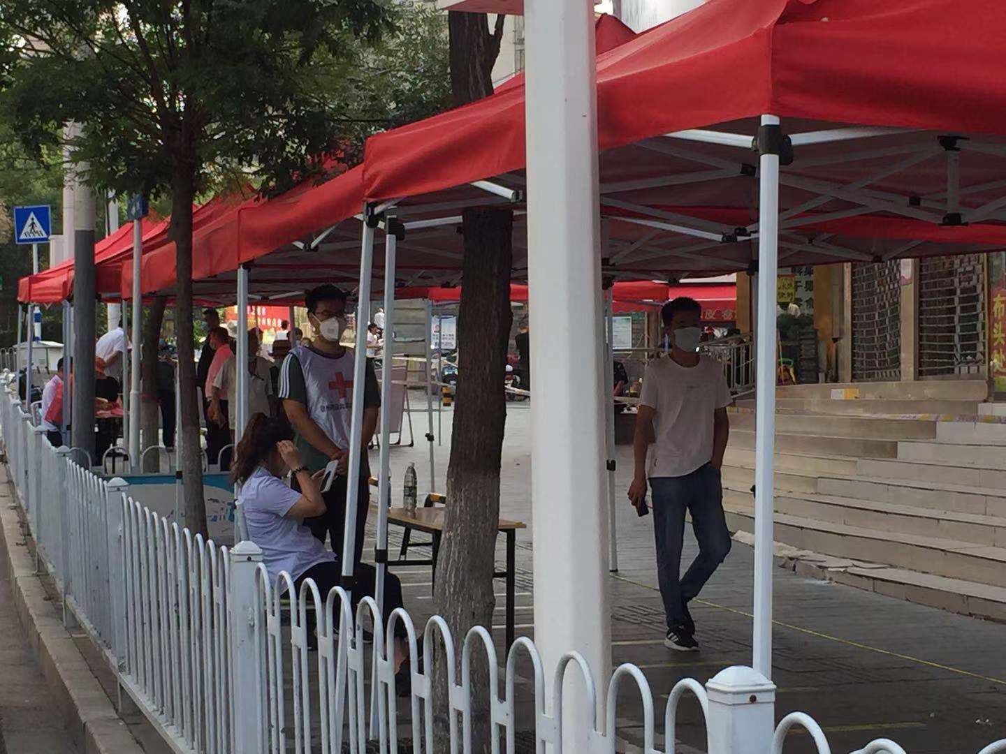 天刚蒙蒙亮,彭城街道燎原社区全员核酸检测采样点的现场,区红十字带领志愿者们早已严阵以待,等候居民们的到来,开展新一天的全员核酸检测工作。