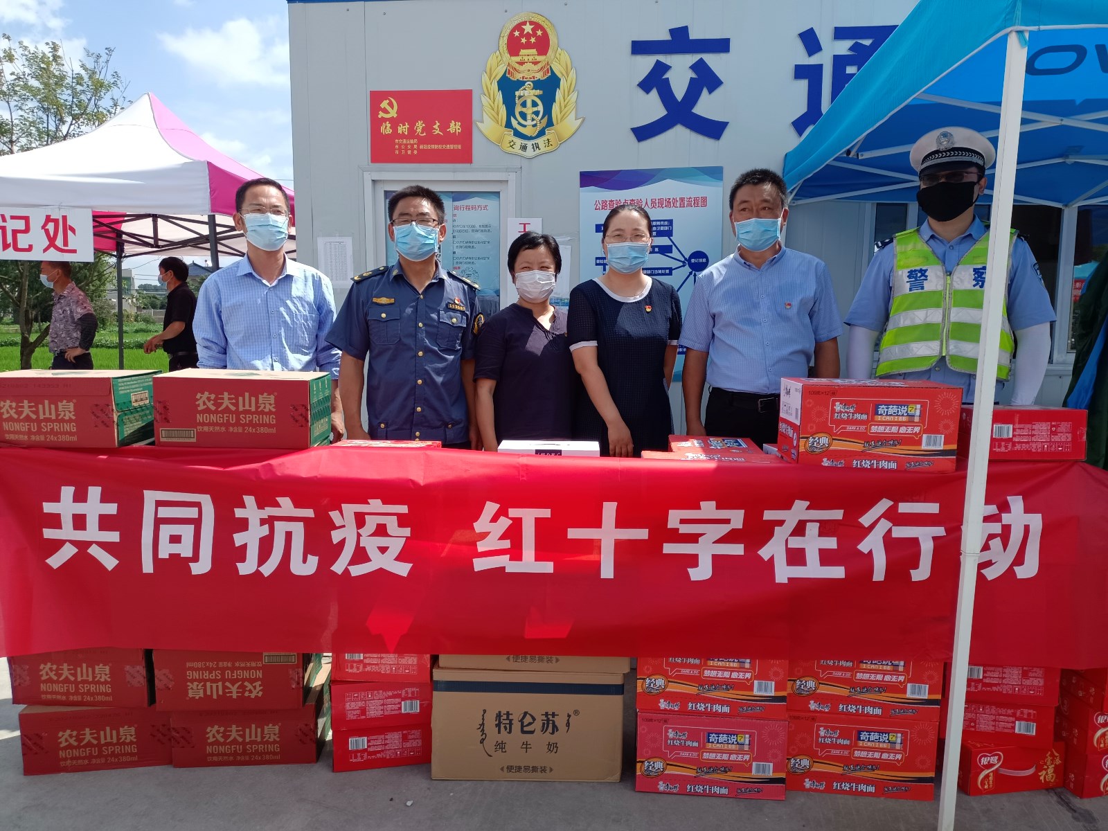 为全力支持防疫工作,市红十字会党员干部和志愿者积极推进“守初心办实事 战疫情当先锋”专项行动,按照市疫情防控指挥部的统一部署,积极响应号召,参与社区“敲门行动”,开展防疫宣传、测温扫码等工作,采购矿泉水、方便面、牛奶、八宝粥等防暑降温物资,共计1.7万余元,慰问一线防疫人员。