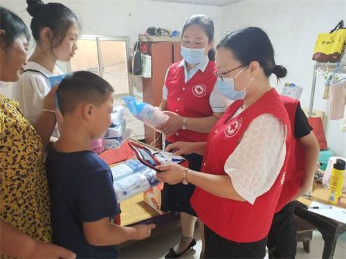 为大力弘扬“人道、博爱、奉献”的红十字精神,深入推进学“党史、办实事,践行“两在两同”活动。近日,盐城市红十字会组织“仁爱妈妈志愿服务队,带上口罩、急救包、急救书籍、生活日用品等物品,再次走进毓龙街道开展走访慰问困难儿童志愿服务活动,给困难儿童送去防疫物资。走访中,志愿者们提醒困难儿童,疫情期间不到人多的地方、出门记得戴口罩,养成良好的卫生习惯。志愿者们还拿出红会急救书籍向困难儿童介绍一些简单的急救知识,教给他们如何自救和救他人,并向他们介绍红十字会的急救包里的物品指导他们如何使用等。