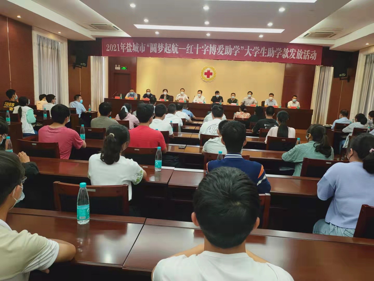 8月30日上午,射阳县7名大学生参加了盐城市红十字会举办的“圆梦起航”红十字博爱助学活动,每人获得助学金4000元。