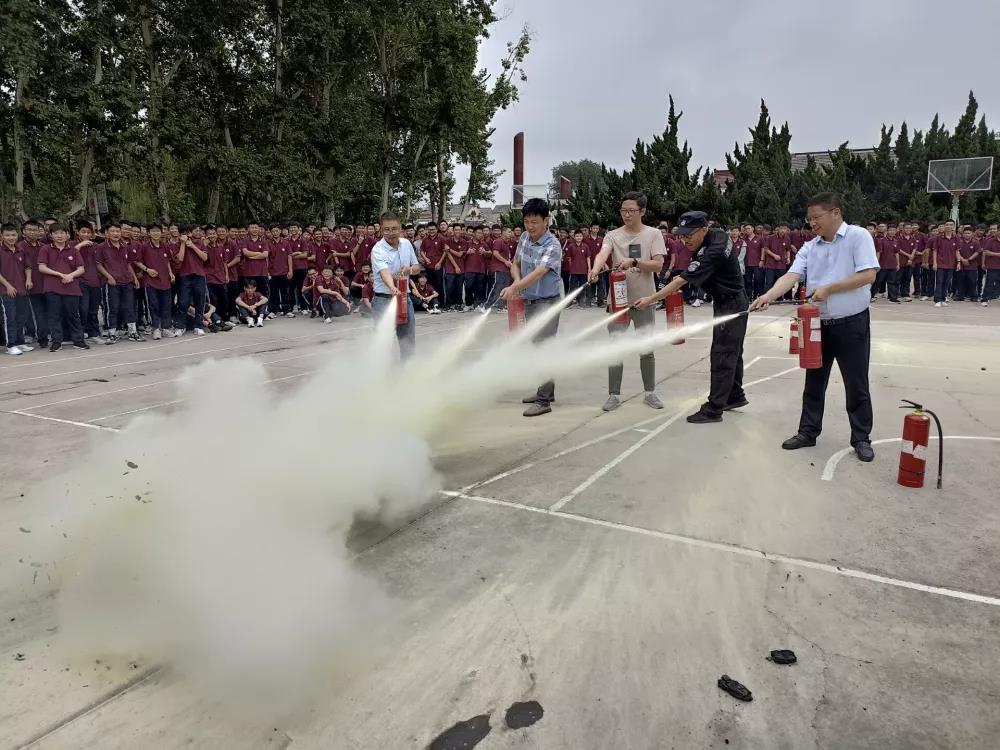 为全面推进素质教育,执行《中华人民共和国红十字会法》、《未成年人保护法》和《消防法》,贯彻“预防为主、防消结合、综合管理”方针,增强师生消防安全意识,开展师生消防安全教育,使师生掌握使用灭火器扑救初期火灾的正确方法,提高灭火自救互救能力,有效预防火灾的发生,位于盐城市盐都区龙冈镇的四星级高中龙冈中学于9月1日上午9时举行了师生消防灭火演练活动。安全保卫处刘鸣主任采取理论讲解和操作示范相结合的方式,就演练的目的、要求、发生火灾的条件、灭火器的种类、干粉灭火器使用方法、演练安全注意事项进行了宣讲,特别提醒师生知晓消防安全“一懂三会”:懂本场所用电、用水、用油、用气火灾危害性;会报火警拨打119;会使用灭火器、消火栓扑救初期火灾;会逃生自救:懂逃生技巧,发生火灾后会选择逃生路线迅速逃离现场。动员师生学消防、懂消防、宣消防,不断提高消防意识、安全意识、生命意识。