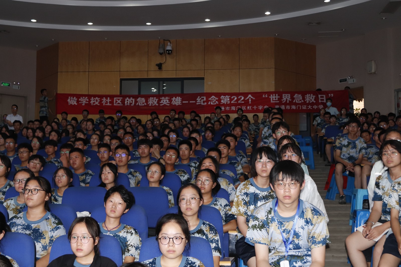 每年九月的第二个周六是“世界急救日”,今年的主题是“做学校社区的急救英雄”。为纪念第22个“世界急救日”,进一步在群众中普及急救知识,让更多人学习急救知识、掌握急救技能,能在事发现场挽救生命和降低伤害程度,9月3日,区红十字会走进证大中学,为全体652名军训新生开展了一期急救知识普及培训。