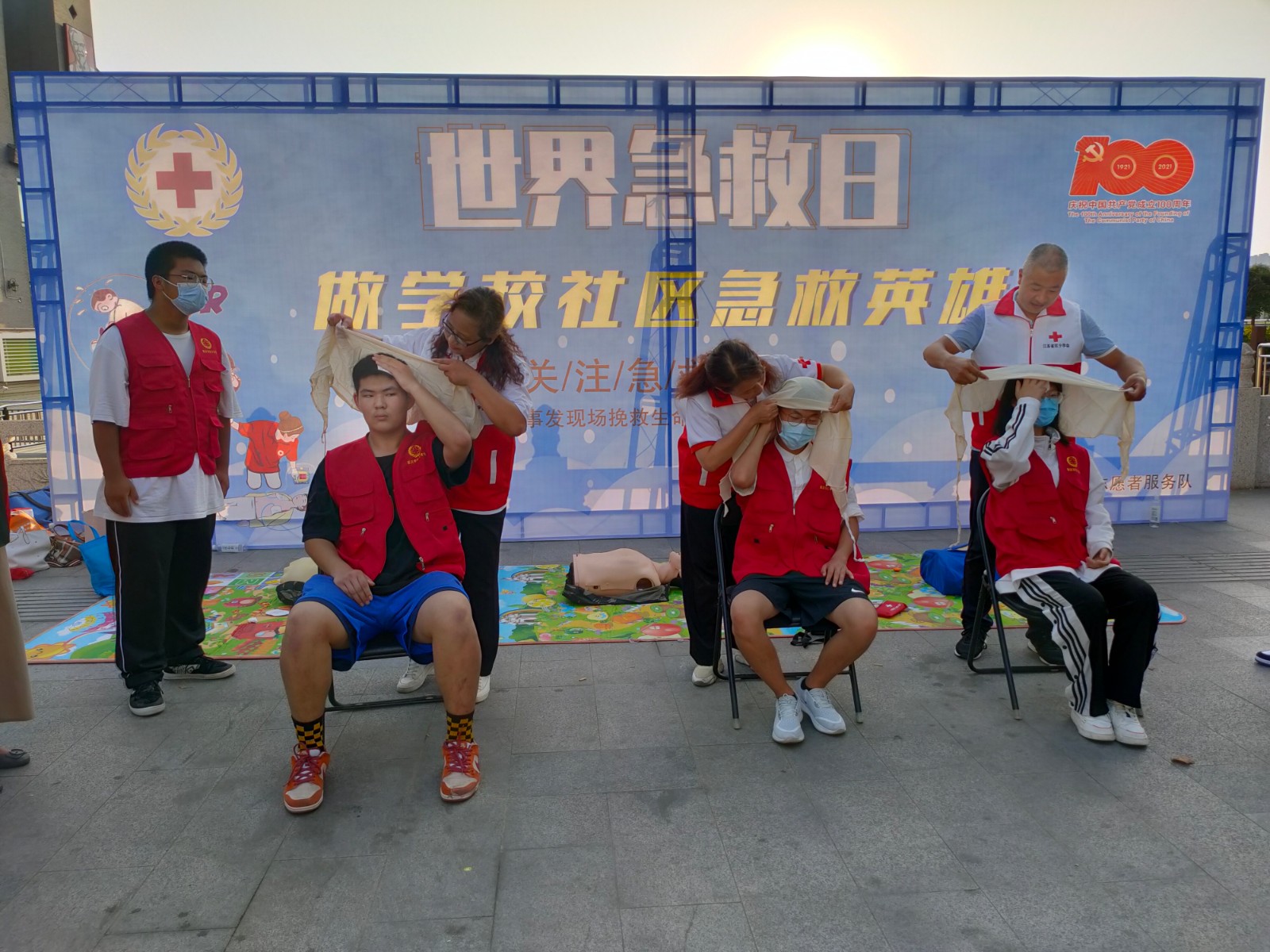 9月11日,是第22个世界急救日,新沂市红十字会志愿者服务队组织4名师资16名在校学生志愿者,走上街头开展“做学校社区的急救英雄”主题宣传活动。