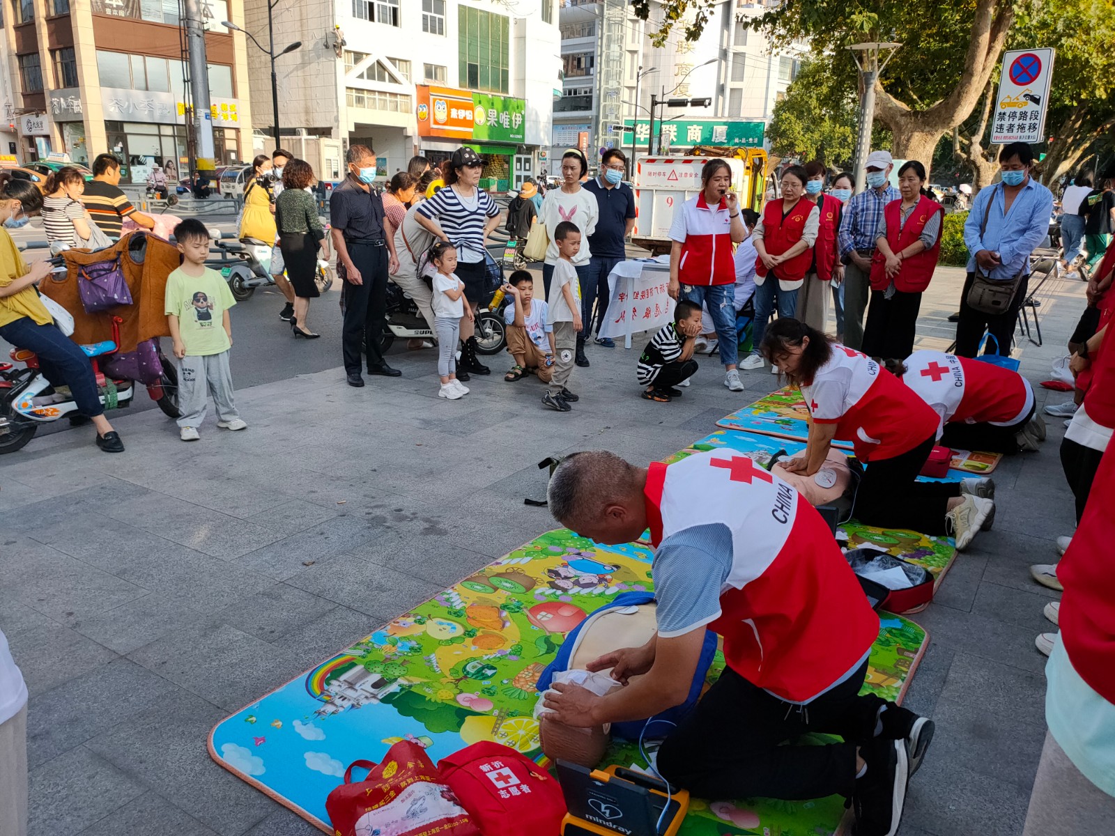 为切实传播红十字会应急救护知识,让广大市民了解掌握应急救护技能,志愿者们开展了心肺复苏(AED使用)、气道异物梗阻、包扎技能演练,吸引大批市民围观学习,该活动提高了市民的救护能力。