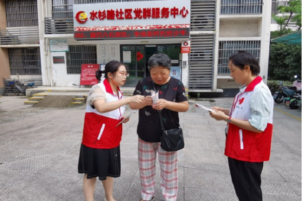 9月9日,北港街道梧桐苑社区红十字志愿者走进学校和小区,开展健康知识宣传教育活动。
