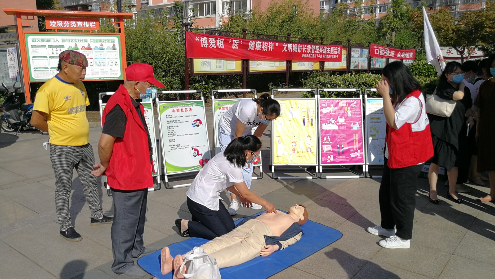 活动现场,医务人员充分发挥医疗专业优势,耐心细致地为前来就诊的社区居民群众进行血糖、血压、视力、听力等多项检测;详细解答关于糖尿病、腰腿疼痛、心血管疾病等方面的健康咨询,对于发现需要进一步治疗的居民群众,医务人员还反复嘱咐一定要到医院进行检查;120急救中心工作人员现场为居民群众讲解演示心肺复苏的操作流程,并手把手进行实际操作教学,居民群众纷纷上前学习操作;红十字志愿者在现场维护秩序,并向居民群众发放红十字宣传折页,积极宣传应急救护、无偿献血、造血干细胞捐献、养老照护等知识。