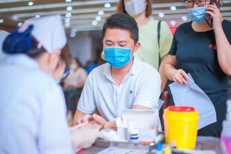 9月18日上午8点,经开区横山桥镇应急无偿献血活动在镇行政中心1号楼二楼会议室有序开展。全镇24个村(社区)和镇一办七局的献血志愿者积极响应,踊跃参加,奉献自己的一份爱心与真情。一大早,献血志愿者们便来到活动现场,有序排好队伍,在医务人员的指导下,认真填写献血登记表,配合做好采血检验等准备工作。在完成严格的检验程序后,志愿者们纷纷伸出手臂,为爱心为生命加油。一个个密封袋被不断储满,温暖在传递,生命的希望在延续。现场,医务人员一边采血,一边耐心讲解献血常识,并叮嘱献血人员献血后注意事项。值得一提的是,为做好疫情防控,本次参加献血的人员分批次、分时间段参加,所有志愿者、医护工作者全程戴口罩,测温、登记、化验、献血、取证整个流程有条不紊。