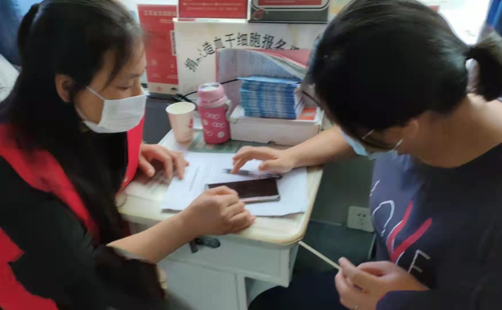 9月23日上午,在射阳县太阳城南门献血车前,射阳县红十字会工作人员为前来参加无偿献血的社会人士宣传普及造血干细胞捐献知识,动员热心市民加入到中国造血干细胞捐献志愿者资料库,得到了在场青年同志的响应,现场就有两人踊跃参与造血干细胞采样登记。截止当日,射阳造血干细胞采样达到100人份,提前完成年初任务。