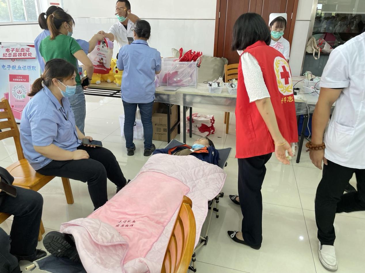 献血现场,红十字会志愿者认真指导大家填写采血登记表,经过医护人员逐一检查化验后,符合条件的同志有序排队,积极配合医护人员完成采血。血站医生为献血活动作现场指导,耐心解读献血科普知识、献血须知,并为成功献血者发放无偿献血证。
