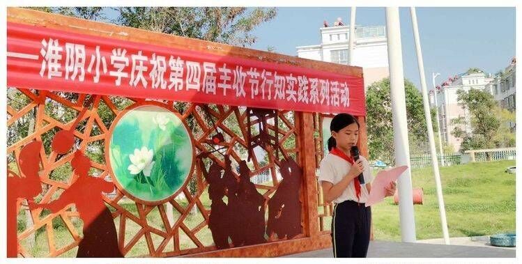 9月23日,秋分,我国第4个农民丰收节。省红十字示范学校——淮阴小学的学生们在小荷花戏台隆重集会,举办庆祝第四届丰收节行知实践系列活动。