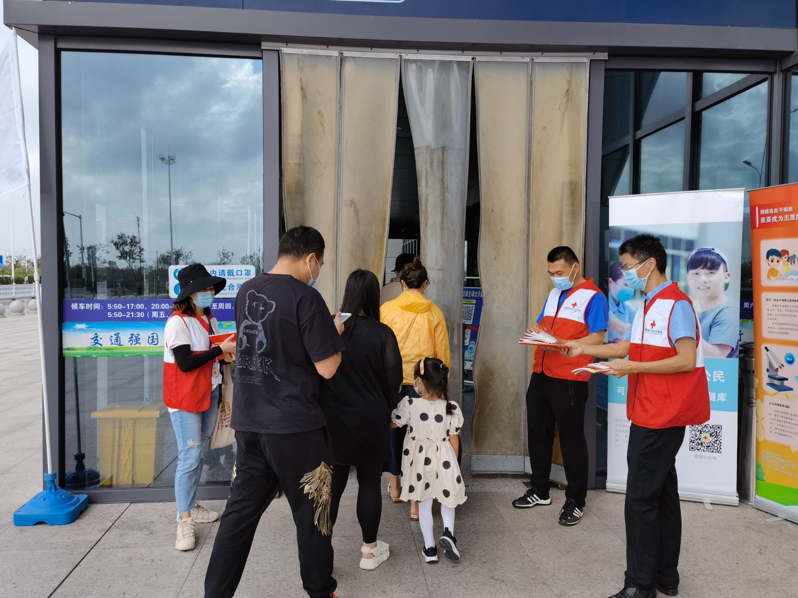 10月6日上午一大早,海门区红十字会志愿者一行人来到海门火车站。按照车站疫情防控要求,在火车站广场、出入口等人流集散地段展开了应急救护知识普及。会旗迎风招展,在易拉宝宣传展板前,志愿者们一边向往来旅客及送行亲人发放“三救三献”知识折页、读本、画册等宣传资料,一边向大家介绍着区红十字会应急救护、献血、造血干细胞捐献、居家养老等公益活动开展情况。短短的两个多小时活动,共发放宣传品100余份。现场群众纷纷表示,这次救护培训宣传活动让大家学到了很多救护知识,希望红十字会多开展此类活动,让更多的人了解日常救护知识、帮助他人和能有效应对突发事件甚至挽救生命。