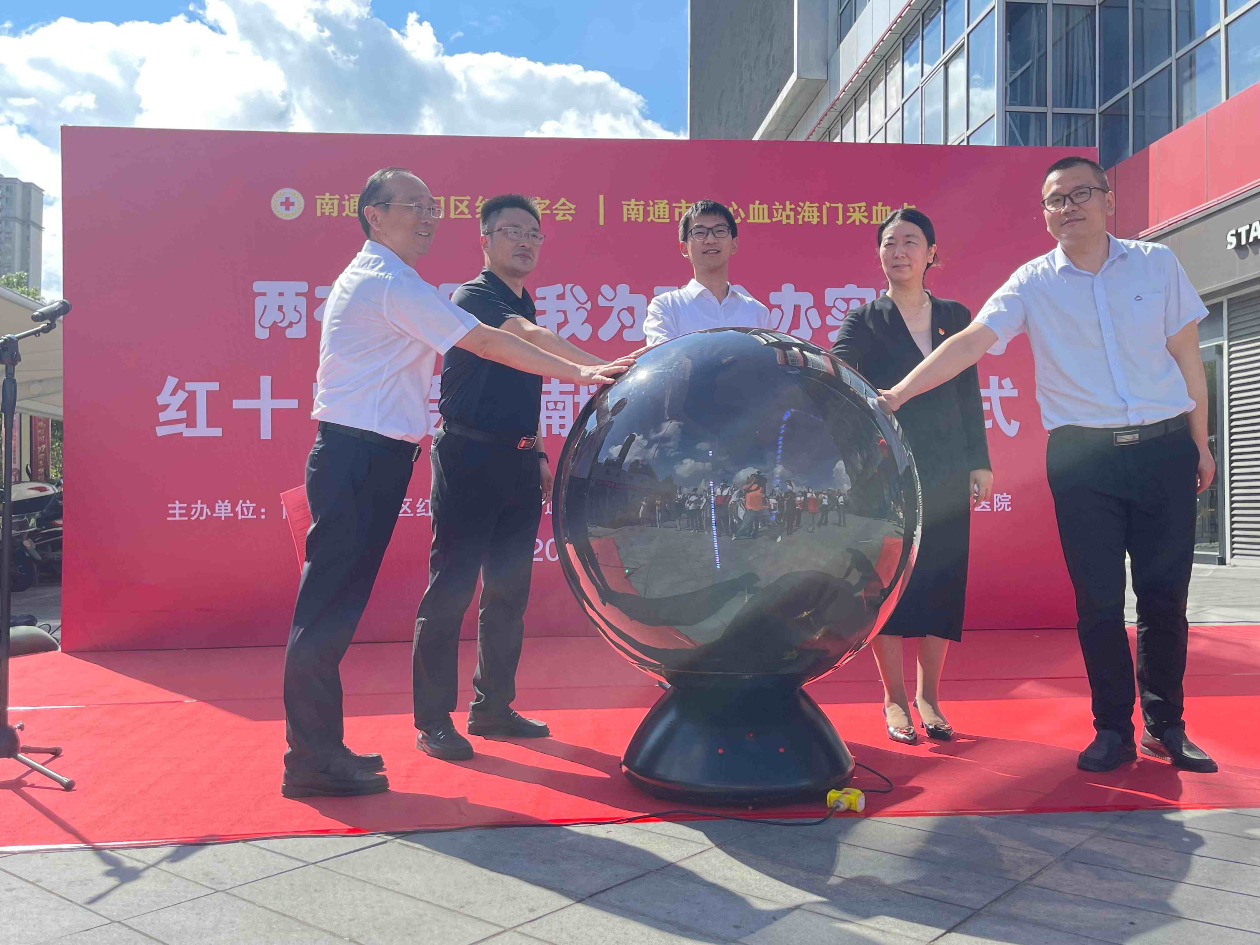 随后,区政府副区长施张范,区人民医院党委书记江琳,区卫健委副主任刘勤,区红十字会党组书记杨曙光和南通龙信商业管理有限公司常务副总经理毛勇共同按下启用球。