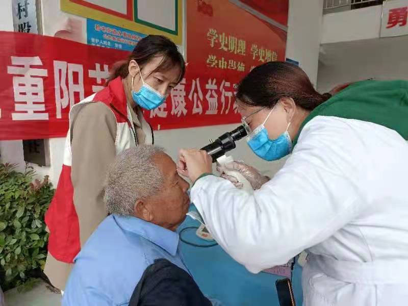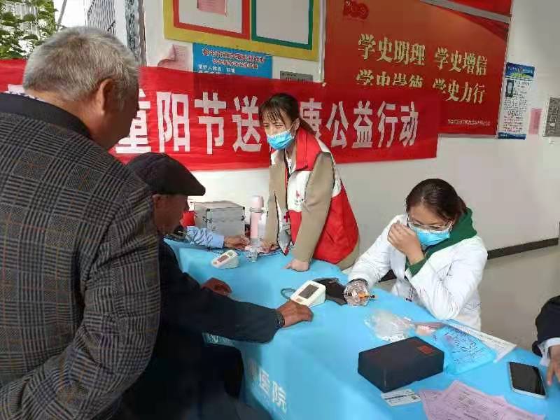 关爱今天的老年人,就是关心明天的自己。重阳节带给我们的不是登高,赏菊、吃重阳糕,而是一种信息;老年人更需要爱、需要快乐和健康。徐州市鼓楼区拾屯街道杨西村组织关爱老年人健康义诊活动,前来咨询和就诊的居民络绎不绝,义诊专家和医生为群众测量血压、听诊检查,为长期服药的老人提出服药建议,详细解答常见病、慢性病的相关知识,普及合理用药的常识,耐心地听他们讲述自己的病症。