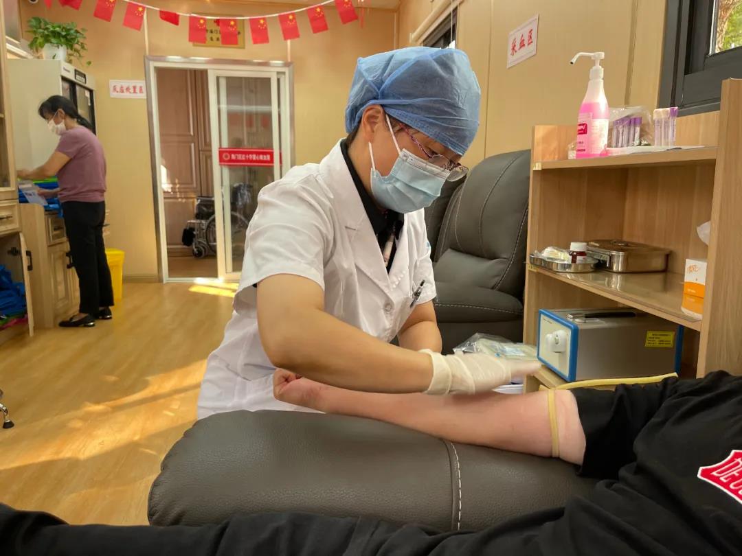 在位于龙信广场东北角的红十字移动爱心献血屋内,一道忙碌的身影正在负责前来献血人员的信息登记、测量血压、扎针抽血等工作,一整套流程在她手里处理得井井有条。她就是区人民医院中心血站的护士长,也是区红十字会的一名志愿者、区红十字会应急救护培训老师,范玉莲。