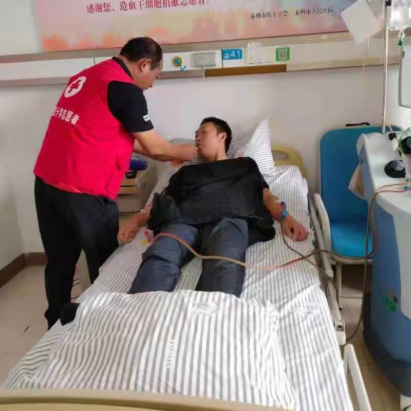10月14日上午8时45分,射阳籍造血干细胞捐献者吴少雨在泰州市人民医院接受造血干细胞采集,经过6个小时,他成功捐献486毫升造血干细胞混悬液,为一名素不相识的白血病患者续航生命。