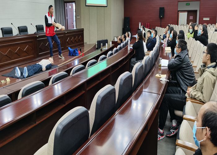 为进一步普及应急救护知识,提高机关工作人员的安全防范意识和自救互救能力,深入持续践行“我为群众办实事”,11月18日下午,丹阳市红十字会组织救护师资走进丹阳市农业农村局,为100余名工作人员举行了红十字应急救护培训讲座。