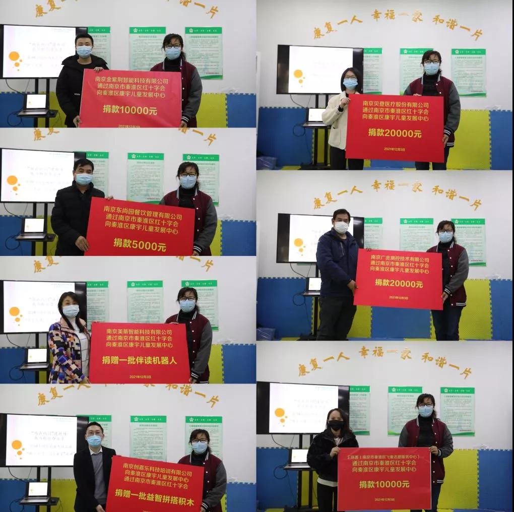 南京贝登医疗股份有限公司、南京广兆测控技术有限公司、e慈善、南京金紫荆智能科技有限公司等7家爱心企业向康宇儿童发展中心捐赠资金或物资。受白下高新区党工委委托,陈吉学部长代表白下高新区党工委对企业的捐赠、康宇工作人员的辛勤付出表示衷心的感谢。倡导大家对残疾人群体给予更多地关注、关心、关爱。