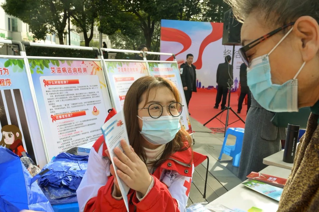 11月28日上午,宜兴市卫生健康委员会联合市红十字会等12家单位在市中心蛟桥河步行街广场开展了大型艾滋病日主题宣传活动,普及防艾知识,动员防艾力量。
