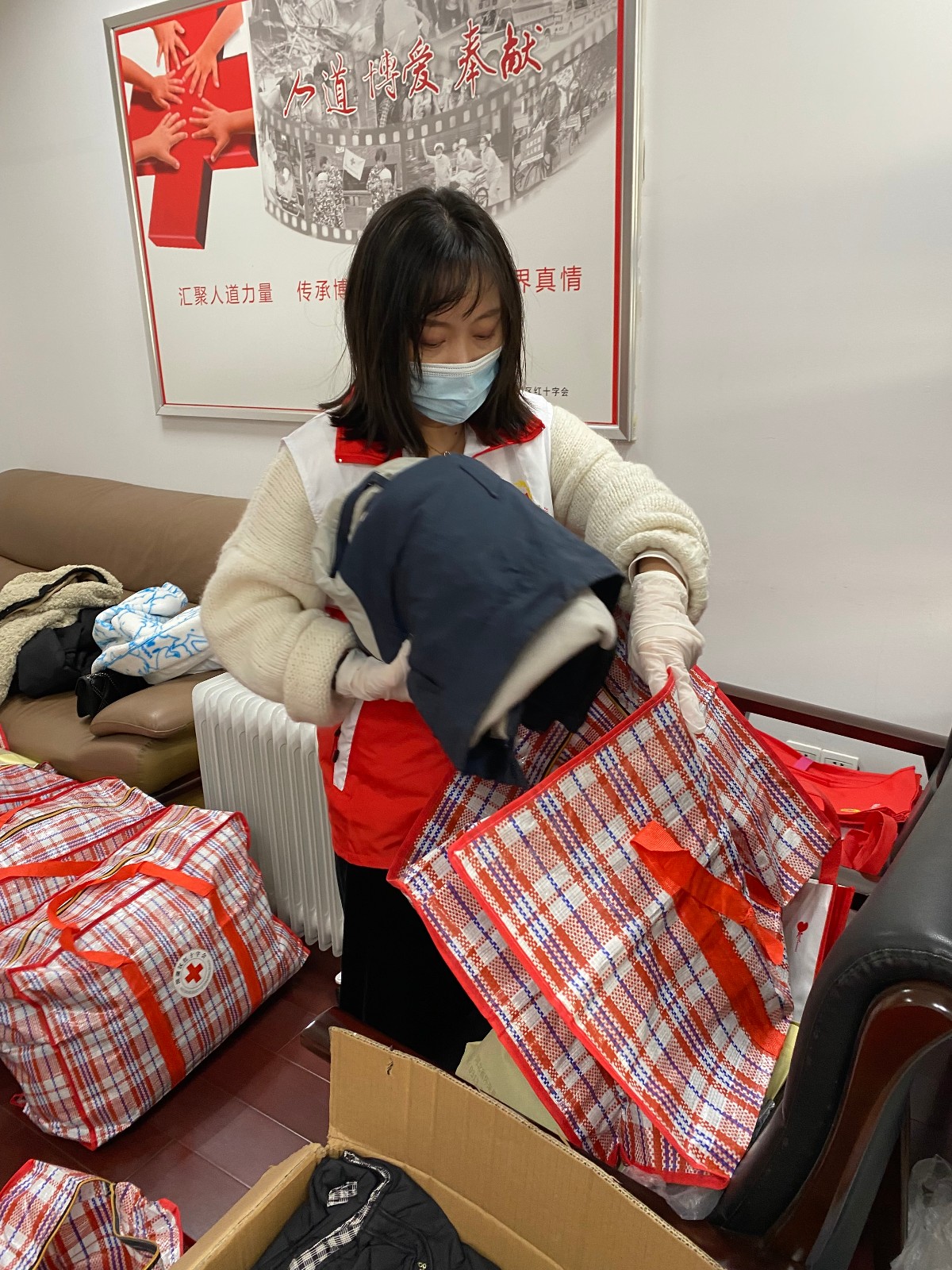 宝诚宝马公司的红十字会志愿者对衣物集中整理、打包和装运,由无锡邮政运送至市红十字会衣物捐赠中心,统一整理、消毒包装,发放给对口援助地区和受灾地区的困难群众,让困境中的人们感受到温暖,营造无私奉献、扶危济困的氛围。