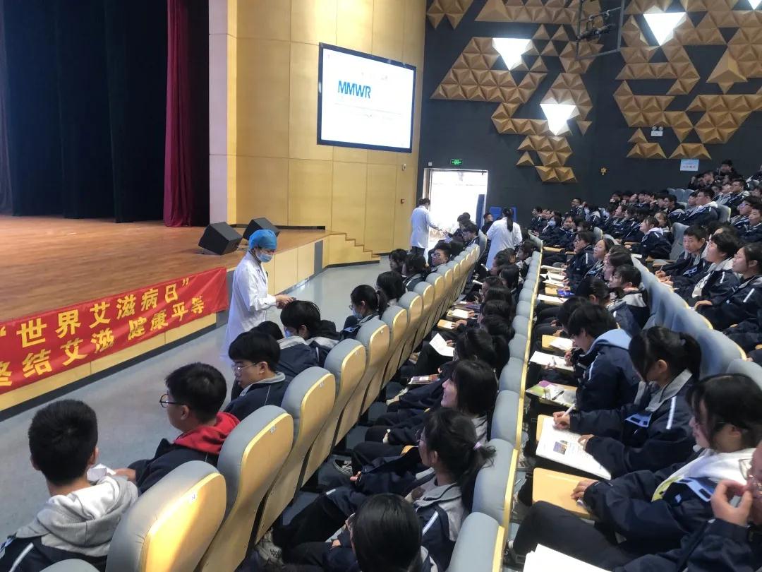 为广泛开展预防艾滋病宣传教育活动,普及艾滋病防控知识,让广大师生了解更多的艾滋病防治知识,营造师生积极参与防艾抗艾的校园氛围,11月25日下午,玉祁街道社区卫生服务中心开展的2021年“世界艾滋病日”宣传活动在玉祁高级中学大礼堂举行。